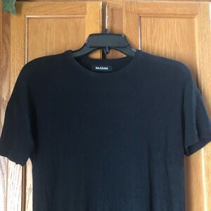 This NAADAM dress is an elegant addition to any wardrobe. The cashmere blend material is lightweight and comfortable, perfect for summer and spring. The dress features a solid black color, short sleeves, and a crew neckline with a pullover closure. The ribbed accents add a touch of classic designer style to the dress, making it suitable for a variety of occasions including parties, business events, and casual outings. The dress is available in size XS and is a regular fit for women.