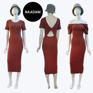 NAADAM |NEW| Cashmere Blend Ribbed Reversible Twist Midi Dress M. A cut above. Cashmere blend knit dress is the wear anywhere piece with a form-fitting silhouette, flattering reversible twist design and unexpected open back. It's the ultimate day-to-night go-to you've been searching for. Dress it up with stacked heel boots or dress it down with sneakers and a blazer. See pics for details and the measurements provided below/Table Chart in the pics to size this dress.
