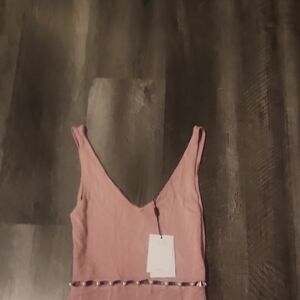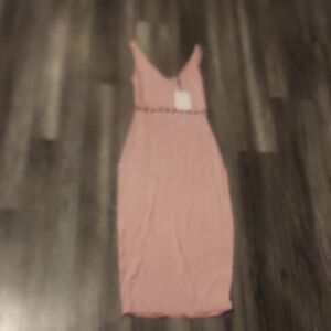 Elegant pink midi dress. Sleeveless with a fitted silhouette. Perfect for any occasion.