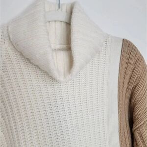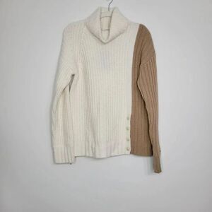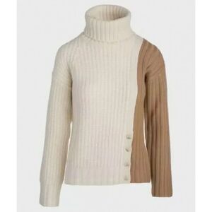 NAADAM Rib Knit Wool-Cashmere-Blend Color Block Buttoned Turtleneck Sz Large $495