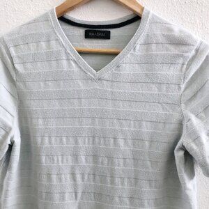 NAADAM Short Sleeve Textured Striped V-Neck Cotton Sweater Medium Size.