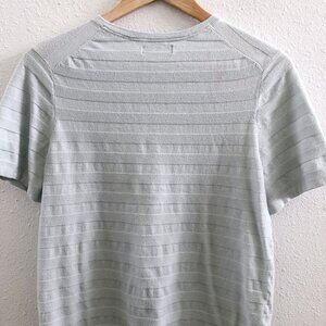NAADAM Short Sleeve Textured Striped V-Neck Cotton Sweater Medium Size
