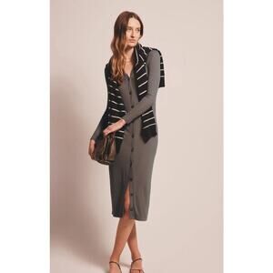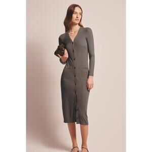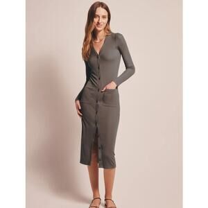 NAADAM Women's Baby Rib Cardigan Midi Dress Small Green Long Sleeve Button Front