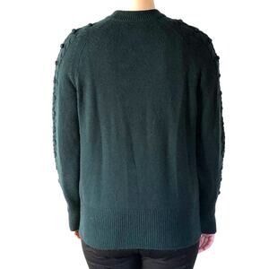 Excellent used condition green knit wool and cashmere blend sweater in the Zayaa model with stunning Pom Pom cable knit pattern made by ethical luxury cashmere brand NAADAM! High quality and made to last for years!
