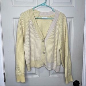 Yellow knit (70% Wool, 30% Cashmere). Cardigan. V-neck.