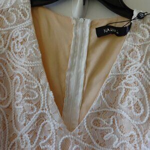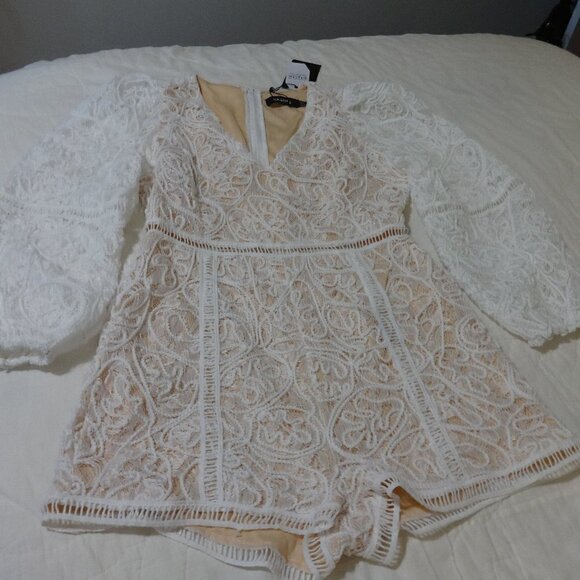 NAANAA, white lacy romper size 8 (US) new with tags v neck lined body very soft