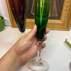 NACHTMANN Purple, GREEN CUT-TO-CLEAR CRYSTAL CHAMPAGNE FLUTES GLASSES Set Of 2