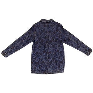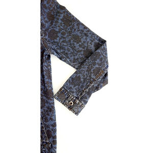 NADIA Blue Jean Jacket With Black Floral Design Button Up Size Large Made in USA