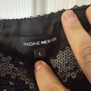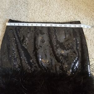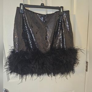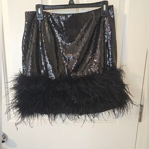 NADINE MERABI Black Sequin And Faux Feather Skirt Size L