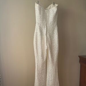 Unfortunately, this doesn’t fit me. Size S 4. No alterations, not hemmed. Only worn once and dry cleaned by previous owner. Belt and straps included. In brand new condition.