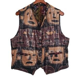 NADYA Art to Wear Reversible Patchwork Batik Vest M-L Whimsical. One Of A Kind