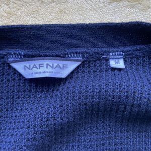 NAF NAF French Womens Blue Duster Sweater Bows On Side Size M.