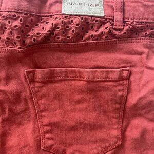 NAF NAF Paris Coral Cotton Denim Eyelet Shorts