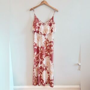 Chic NAF NAF dress with pink and cream floral design. Adjustable spaghetti strap.