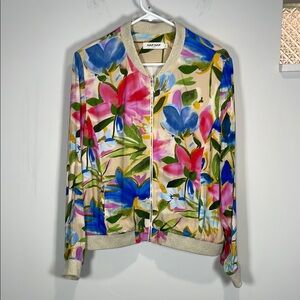 NAF NAF Pink and Cream Floral Watercolor Bomber Jacket Floral Elegance