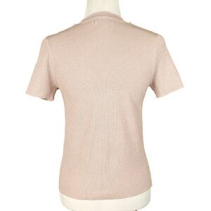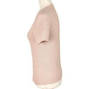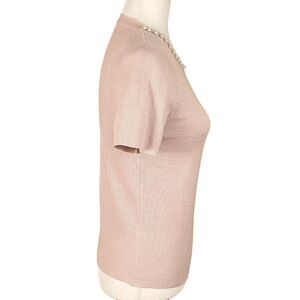 NAF NAF Ribbed Sweater Size S Soft Pink Pearl Embellishments Short Sleeves