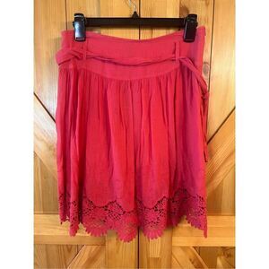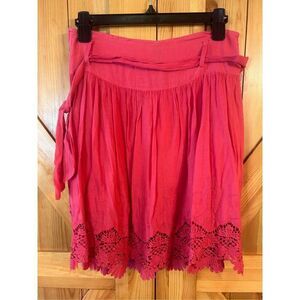 NAF NAF Skirt US 6 Womens Coral Side Zip Waist Tie lined scalloped embroidery floral lightweight nwt measurements 28” waist 21” length (4143)