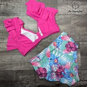 Bask in the sun-kissed madness of summer with this NAFLEAP Ruffle Shoulder High Waist Bikini, a pink/multi vortex of color that screams liberation from societal norms. Polyester/Elastane, brand new and begging to be worn, a wild sartorial beast that demands to be tamed. The ruffles at the shoulder are anarchy in textiles, a chaos of fashion that defies the conventions.