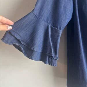 Chic V-neck blouse with flared sleeves. Perfect for versatile styling.