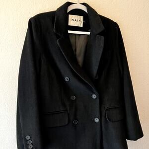 NAIN Korea Women's size M Black Soft Double Breasted Peacoat Jacket Workwear