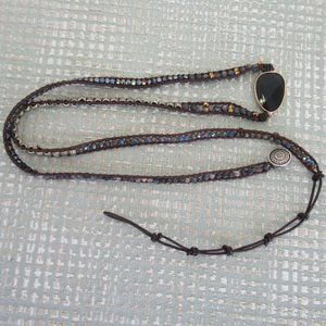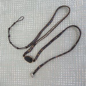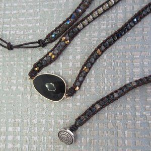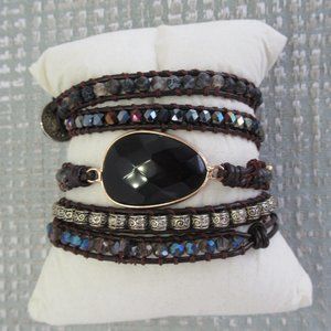NAKAMOL Mix Wrap bracelet with Black Large Faceted Crystal and Natural Stones Beads. Leather Braided Bracelet