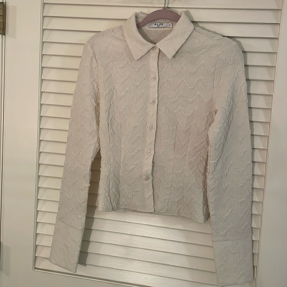 NA-KD Cream Textured Structure Fitted Button Down Blouse