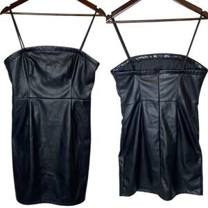NA-KD Faux Leather Black Bandeau PU Mini Dress w Removable Straps sz 40 / Large