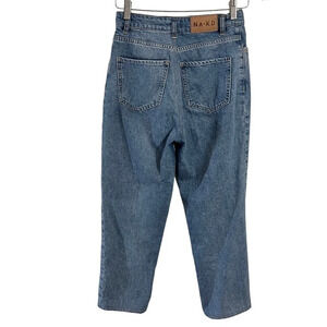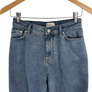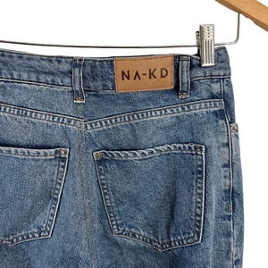 NA-KD Jeans Straight Leg Side Slit Leg Hems Light Wash Blue Denim Pants Casual