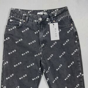 NAKD Jeans Women Size 8 EU 36 Gray Wash ALL OVER PRINT High Waist‎ Skinny NWT