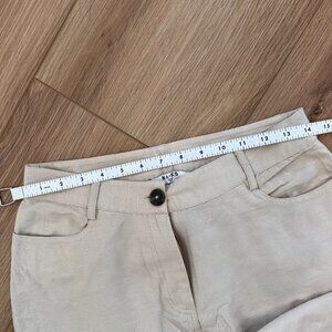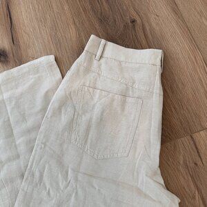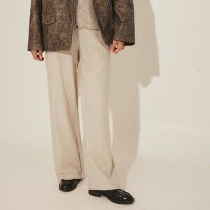 These trousers are made of linen blend and feature a relaxed flowy fit.
