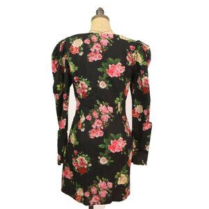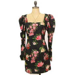 NA-KD Puff Shoulder Mini Dress Size 8 Floral Cotton Blend Black Multi EUC B58