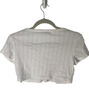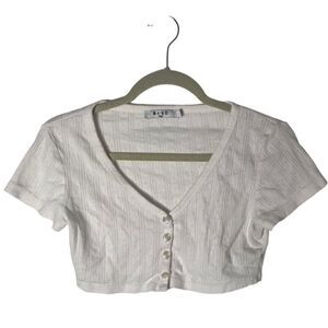 NA-KD White Textured Button Front Cropped Top Size S 100% Cotton Short Sleeve