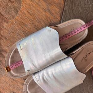 Shimmer in Style: Iridescent Silver Leather Platform Sandals