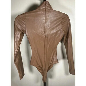 NAKED WARDROBE Bodysuit Womens Long Sleeve Brown Mock Neck XS