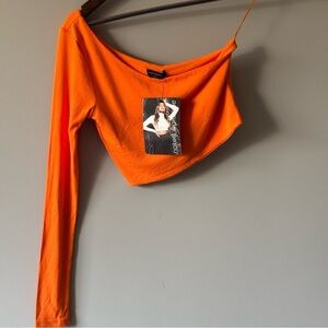 NAKED WARDROBE LONG SLEEVE ONE SHOULDER CROP TOP SIZE MEDIUM ORANGE