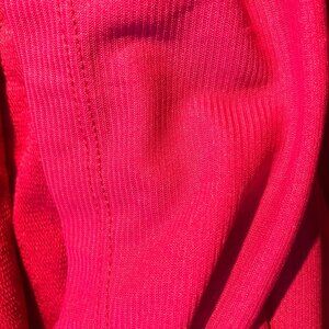Soft Jersey fabric with rough edges on neckline and armholes. Skirt part is fully lined. Drawstring can create cinched waist or leave as dropped waistline fun frock. Large. Chest: 19"