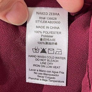 The Naked Zebra Long Sleeve Lightweight Raspberry Red Blouse in Size L effortlessly marries vibrant style and comfort. Featuring a chic button closure in the back, this blouse adds a touch of modern flair to your wardrobe, making it an ideal choice for a fashion-forward yet easygoing ensemble.