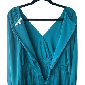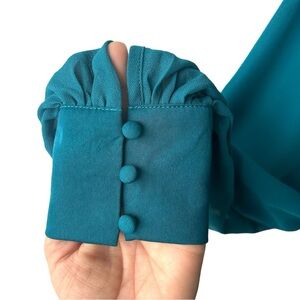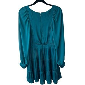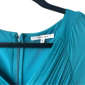 NAKED ZEBRA Teal Blue Faux Wrap Front Tiered Sheer Sleeve Mini Dress Size Medium