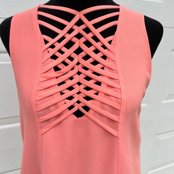 NAKED ZEBRA, criss cross strap tank top, coral sheer with lining. Women's size M