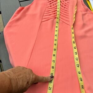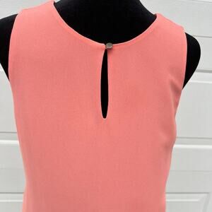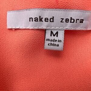 Naked Zebra Woman’s beautiful criss cross strap sleeveless top. Size M. Coral, sheer but has lining. Polyester. 4” opening in back of neck with button closure.