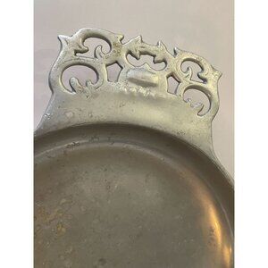 This vintage Nambe #211 bowl features a unique porringer style with a scroll handle, perfect for adding an elegant touch to your dining decor. A collectible piece, it's both functional and stylish.