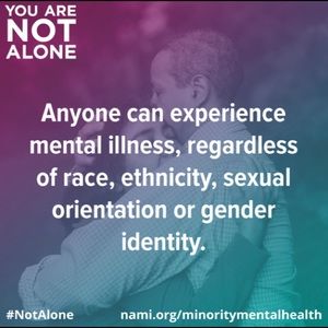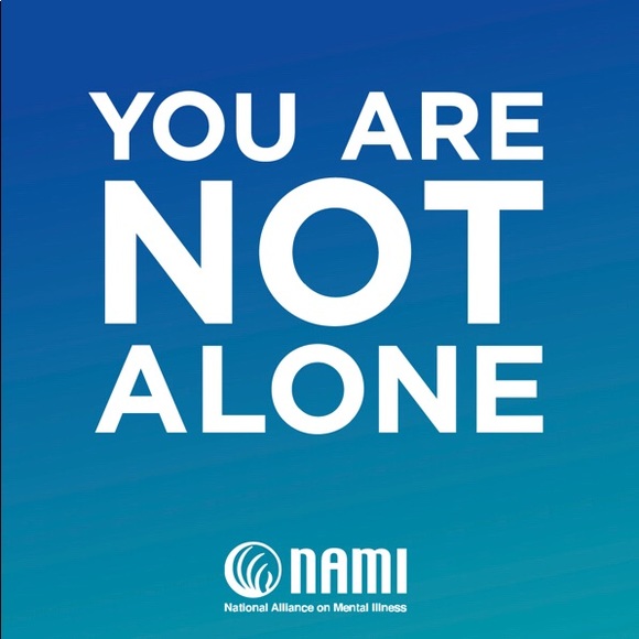 “You are not alone” campaign. NAMI is National Alliance on Mental Illness. An organization that provides support and education to the public and advocate for policies that support people with mental illness and their families. #NotAlone