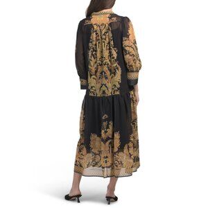 NANCY YANG Black Button Down Front Paisley Print Maxi Dress