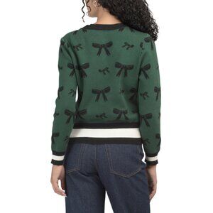 bow pattern, button front closure, contrast stripes, comfort stretch knit