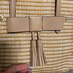 NANETTE LEPORE ARABELLE ‘paper’ straw shoulder bag / purse wht cream tassels bow