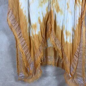 NANETTE LEPORE Orange Tie Dye Glitter Trim Fringe Ruana Cover-Up Shawl Top