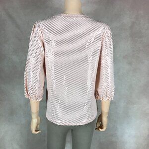 NANETTE LEPORE Coral Shimmer Dot 3/4 Sleeve Top NWOT M