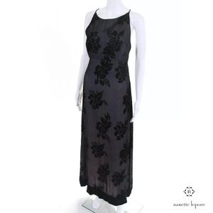 NANETTE LEPORE Elegant Blk Sheer Satin Floral Gown