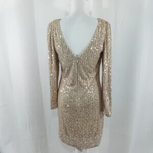 This dress defies being just fabulous; it's dazzling! From Nanette LePore, it's a stretch sheath of micro sequins in glimmery gold on gold net! Vertical lines, long sleeves, plunging v-back! Absolutely scrumptious! Size 8, back zipper, fully lined! Excellent! Superb EUC Condition! **ABSOLUTELY GUARANTEED CONDITION: EUC MINTY-EXCELLENT TO LIKE-NEW, by Lily @HauteClub!***
