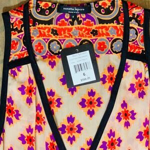 NANETTE LEPORE Long Sheer Dress Sz 6 Multi CoverUp Floral Sleeveless Pockets NWT